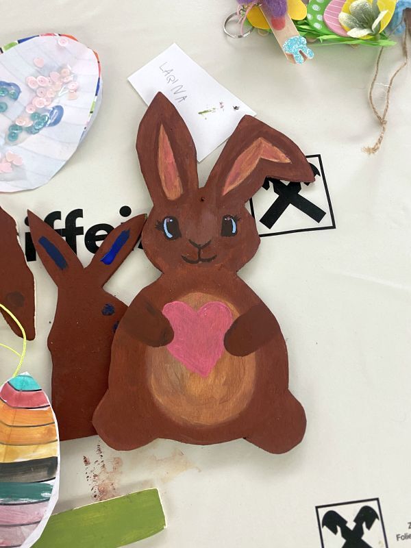 Von Anfang bis Ende waren die Kinder und auch ihre Begleitpersonen fleißig am schneiden, sägen, malen und kleben. Die Begeisterung fürs Basteln erfüllte den ganzen Raum. Von dekorativen Papier-Ostereiern, über bunte Blumenstecker war für alle etwas dabei. Auch im Pfarrcafe konnte man sich wieder eine willkommene Pause gönnen. Vielen Dank an alle Bäcker:innen für die exzellenten Kuchen. Wir freuen uns auf das nächste Mal.